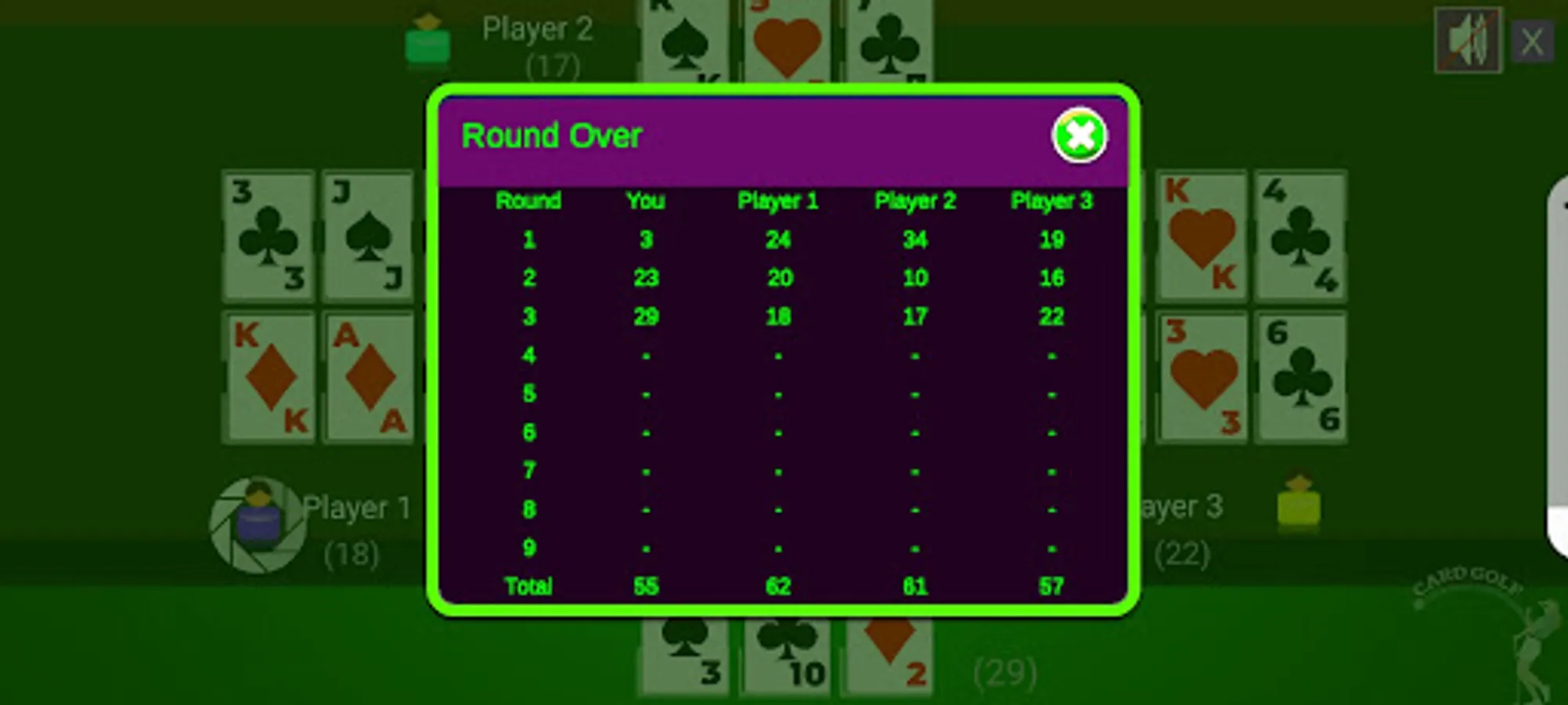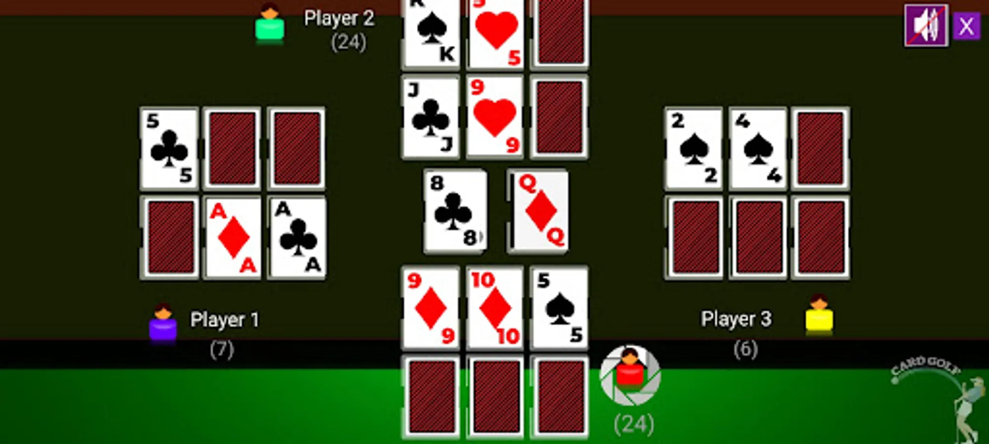 It’s a simulation of Golf game played with a standard 52-card deck plus 2 Jokers. Each player is dealt 6 cards face down from the deck, the rest of the cards are placed face down and the top card is turned up to start the discard deck next to it.