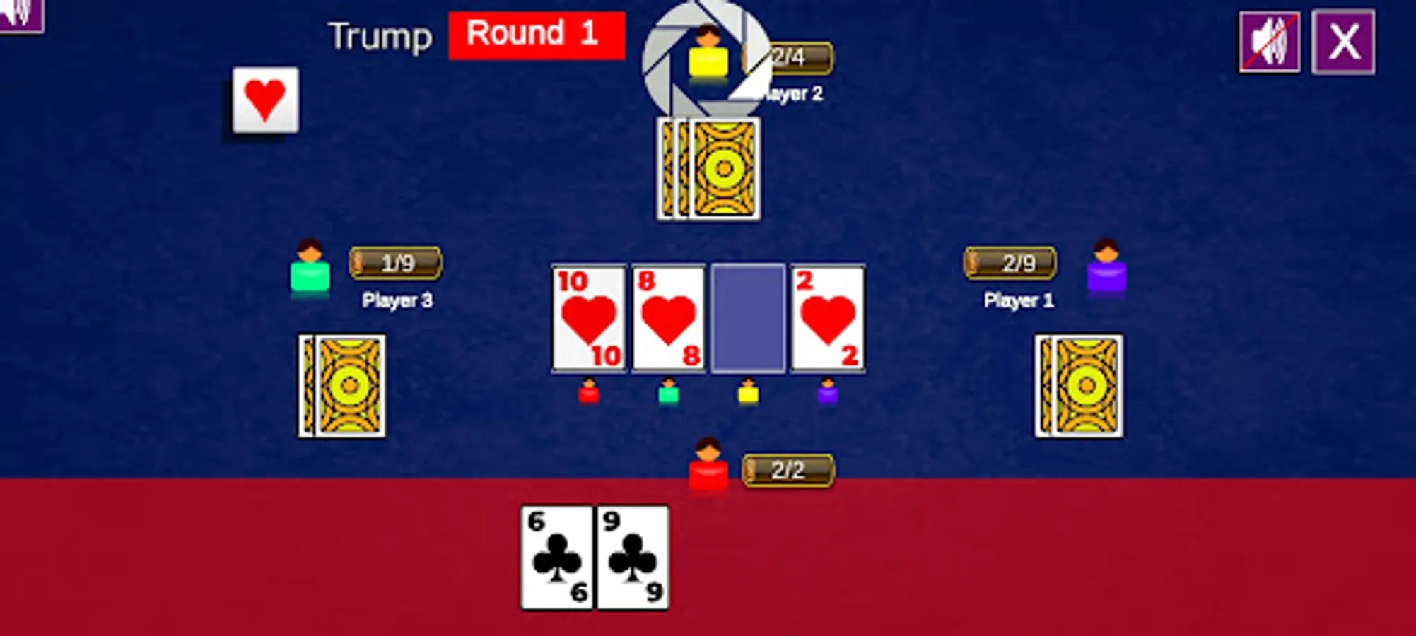 All the other players, at their turn in counter-clockwise direction make their predictions on the number of hands they will make.