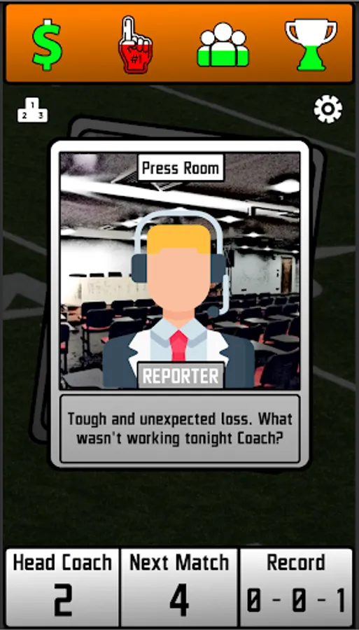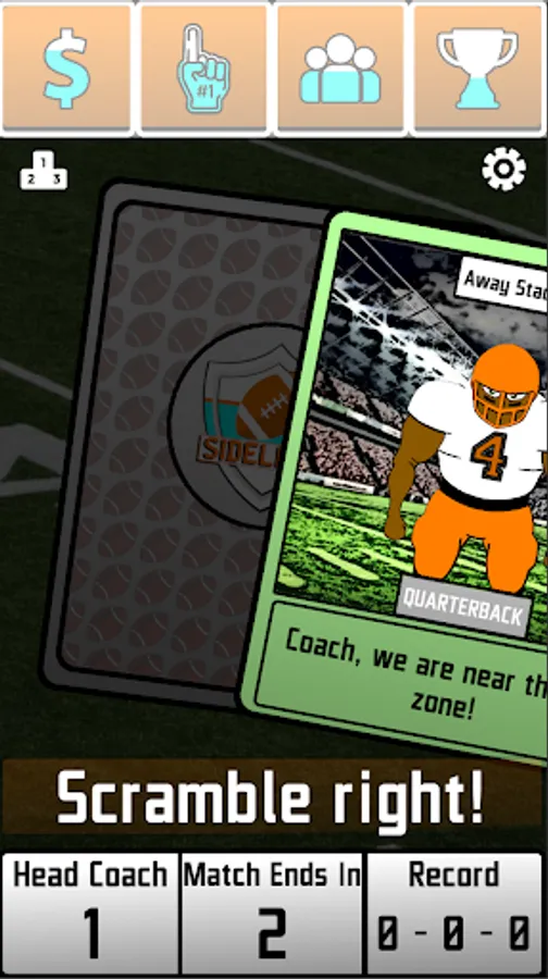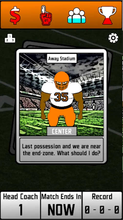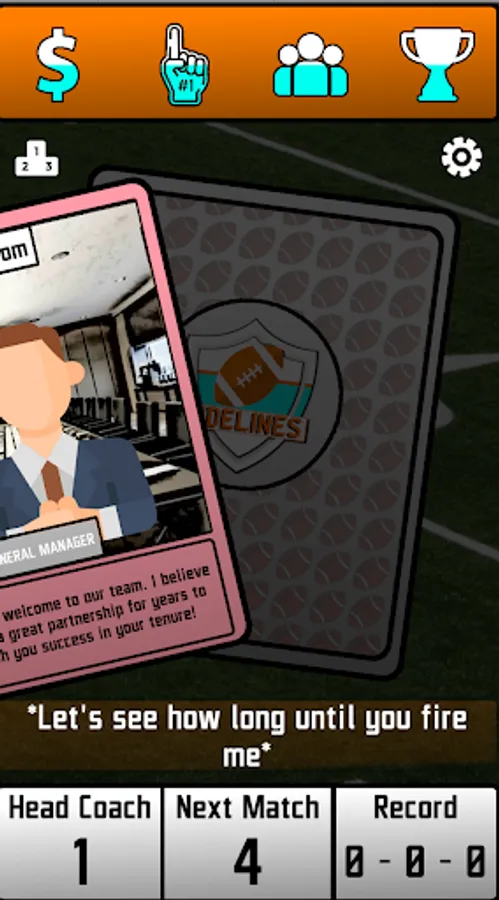 Put on your headset and start managing an American Football Team from the sidelines. Juggle Budget, Fan Support, Team Morale and Team Success as you take on challenging decisions while you tackle your way through the League. Manage your team by swiping cards to left or right! Each decision will have an effect on the four statistics mentioned above and your Team Owners will evaluate your tenure with the team based on those stats. Your goal is to stay on the job for as long as you can and please your team's owner! Let's see how long you will last on the team. Every single decision you make will decide your success in the American Football League! Your decisions can win you trophies or they can get you fired!