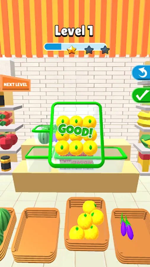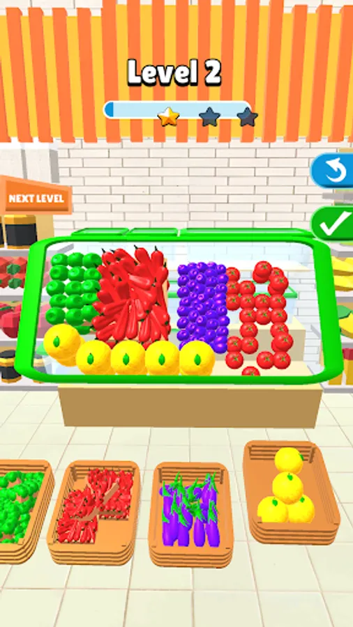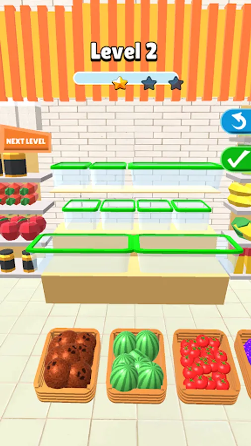 The market is waiting for you to open. You can fill the boxes starting with the fruit you want. Pay attention to the better filling. It would be better to start with large fruits and vegetables. More different fruits are waiting for you at each level. Come on, don't stop!