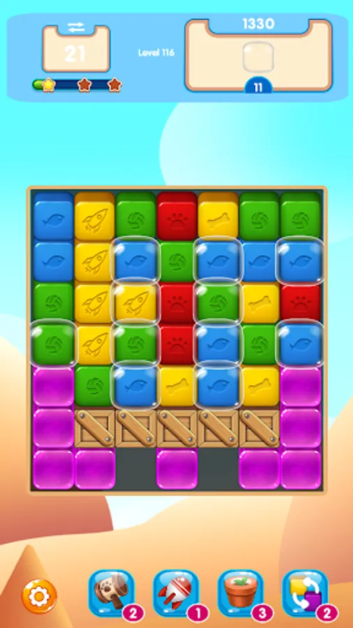 Tap to crush 2 or more adjacent cubes of the same color. Make awesome combos to get awesome boosters.
