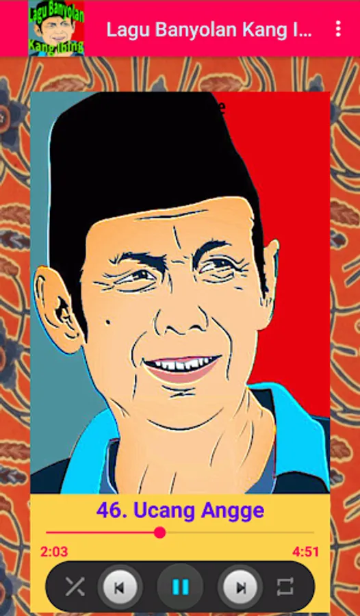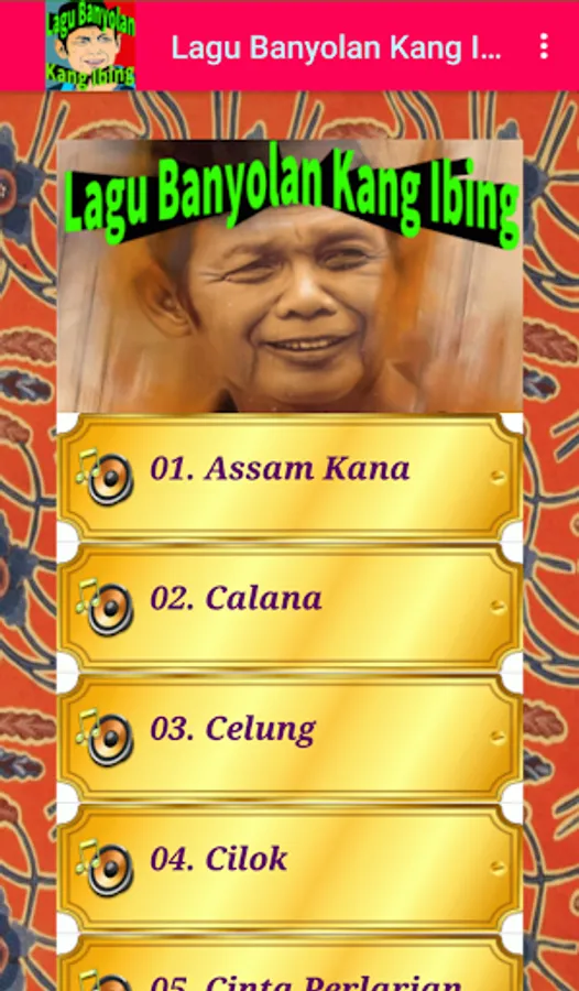 An application that contains a complete collection of funny songs from the legendary Sundanese cultural observer, Kang Ibing. Install and enjoy a different experience from Kang Ibing's songs which are guaranteed to churn the stomach with typical jokes. Enjoy various songs of Kang Ibing's jokes such as Shake and Shake, Inem Enter City, Kampungan Playboy, He Is Among Them, Ibing Becomes Shaman, Dolongdongco etc. All songs can still be listened to even without an internet connection. Also can be used as Ringtone, Notification, and alarm.