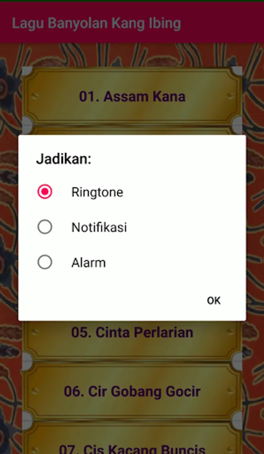 * Ringtone. Each audio can be used as Ringtone, Notification, and Alarm on our android gadget.