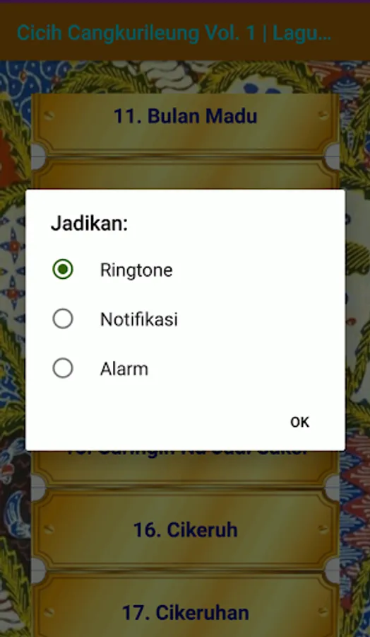 * Ringtone. Each audio can be used as Ringtone, Notification, and Alarm on our android gadget.