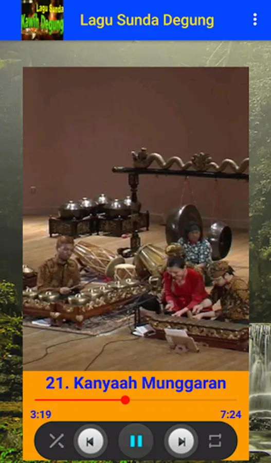 Presented application for fans and connoisseurs of Pasundan land culture, Sunda Kawih Degung Songs. This android application contains Sundanese songs accompanied by Sundanese degung music. Install and enjoy the most popular Sunda Dedegungan songs such as Angin Peuting, Hareupeun Kaca, Kantun Song Jeung Rumpaka, Tembang Kasmaran, etc.