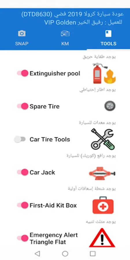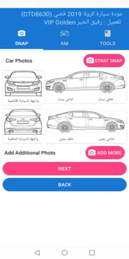 تصوير السيارة عند الخروج والعودة لعدد يزيد عن 30 صورة لضمان جودة الخدمة متكامل مع نظام داينامك للتأجير وإثبات حالة السيارة في حال الاختلاف مع العميل ولتقدير الحوادث قبل وبعد يفضل لمن يستخدم التطبيق أن يكون لديه نظام داينامك لتأجير السيارات