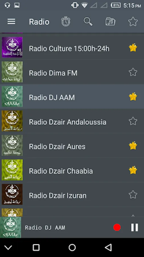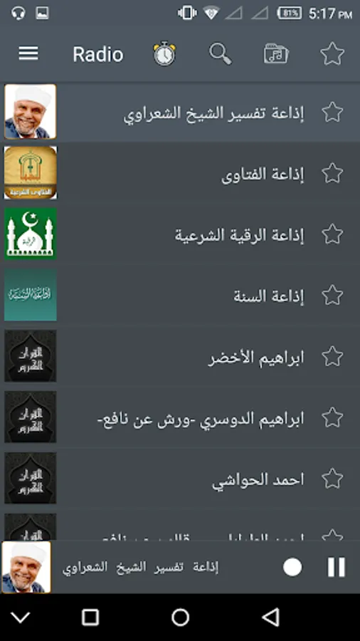 4- يحتوي البرنامج على خاصية إظافة الإذاعات إلى المفضلة والوصول لها بضغطة زر.