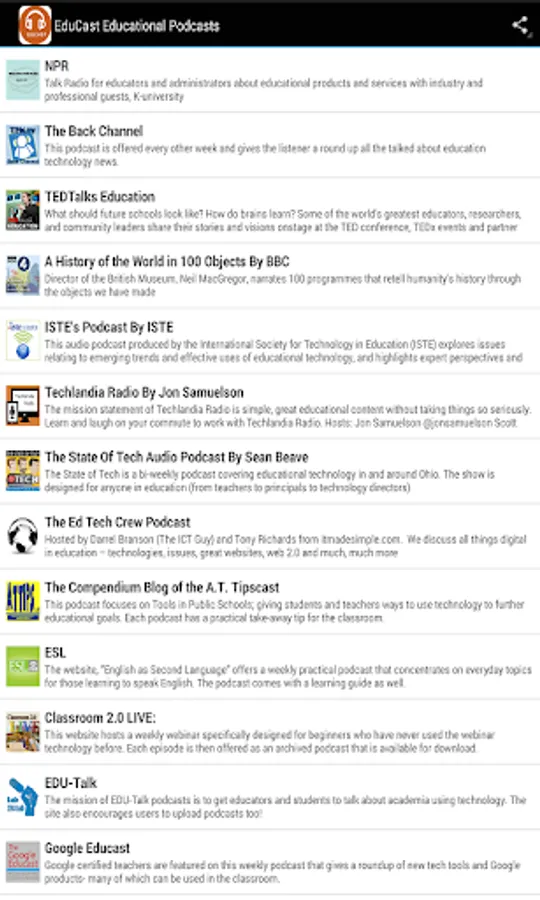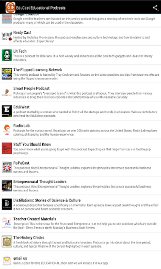 You can’t find your favorite Educational Podcast, no problem. Just send us your favorite EDUCATIONAL show and we will include it in our next update.