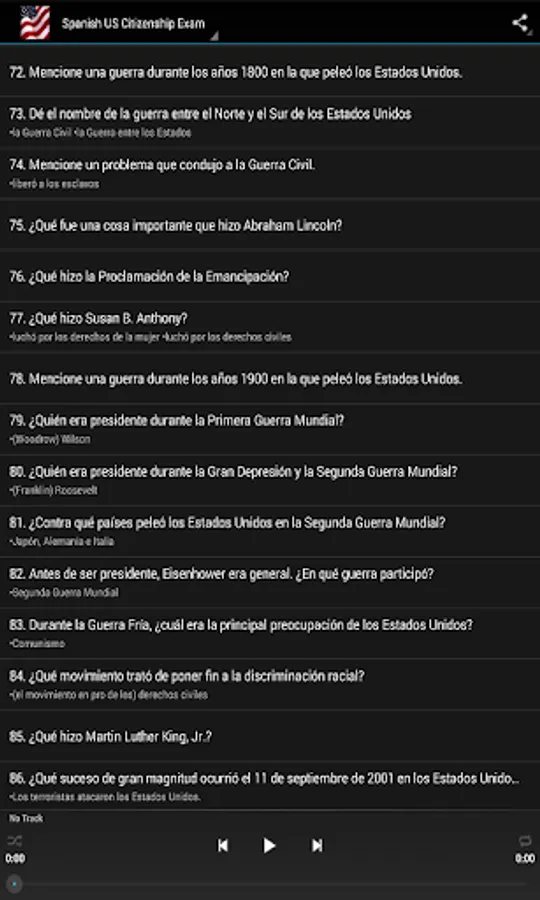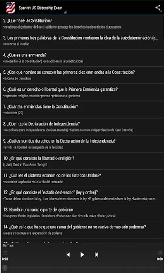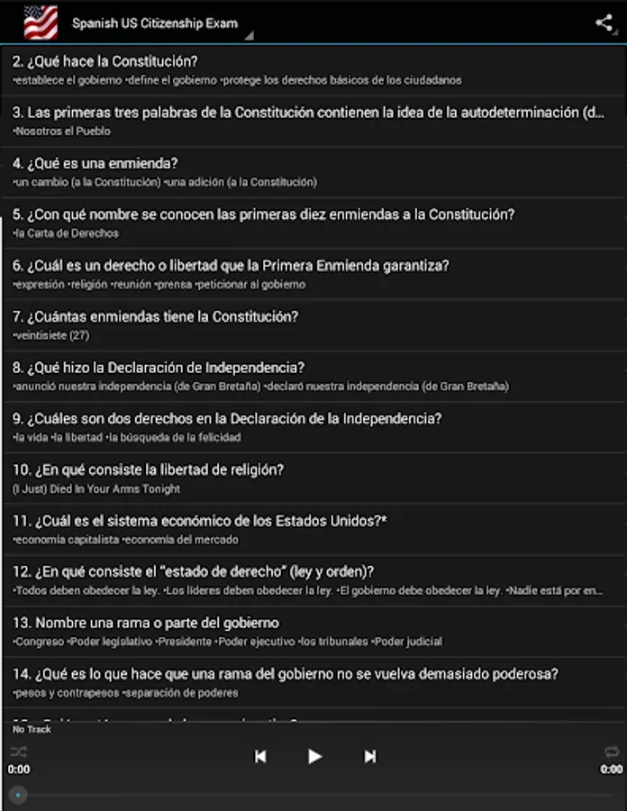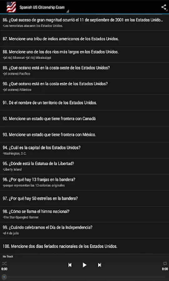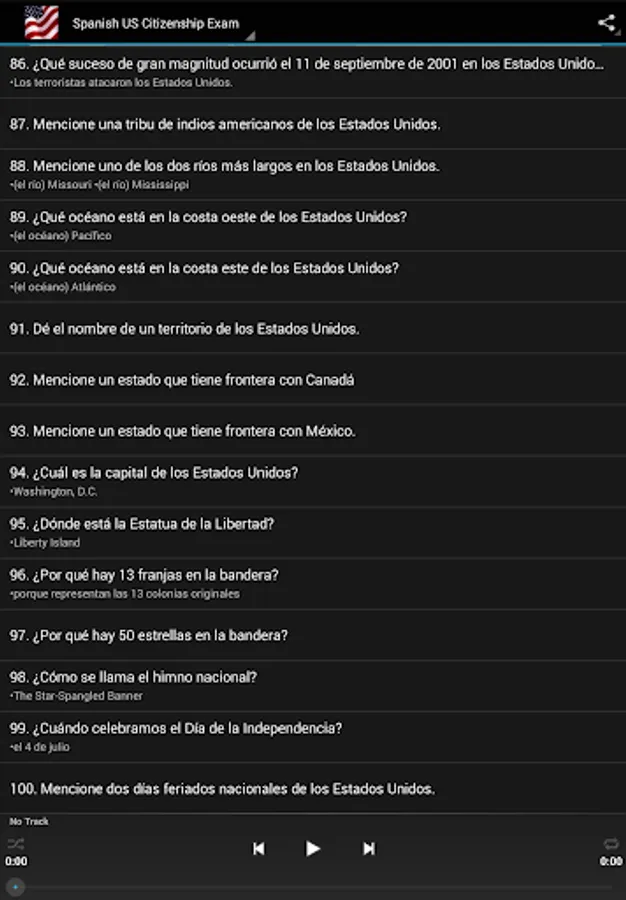 • This apps contain the 100 civics (history and government) questions and answers for the naturalization test.