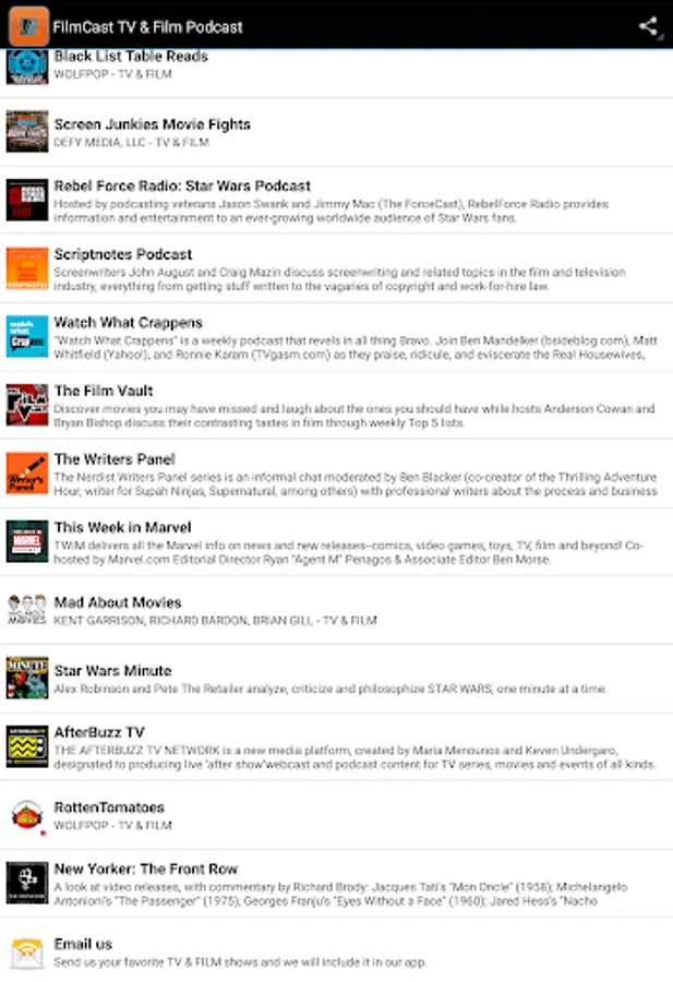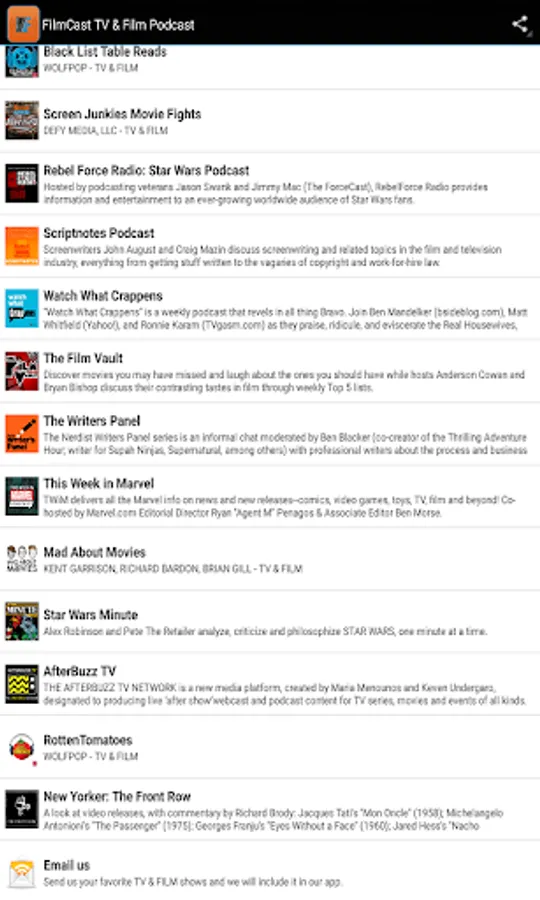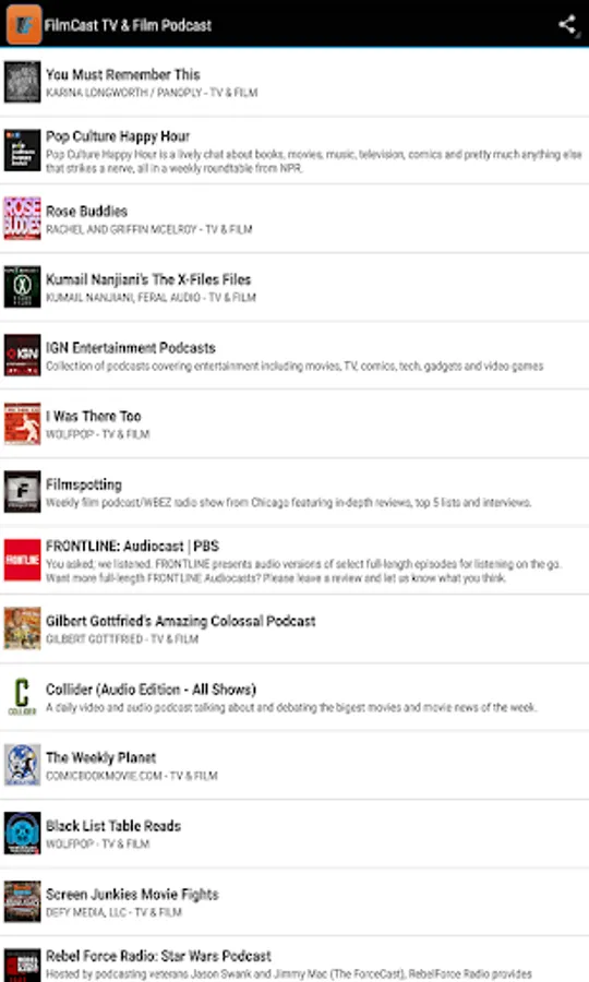 You can’t find your favorite Film & TV Podcast, no problem. Just send us your favorite show and we will include it in our next update.