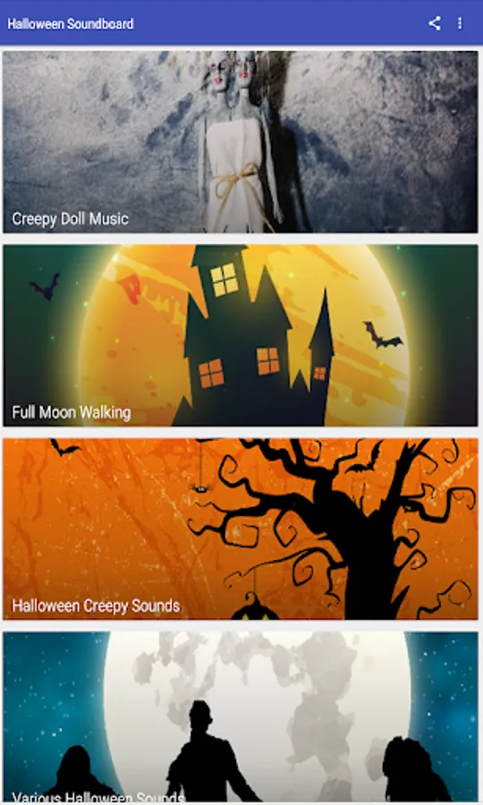 In this app, you can find a variety of Scary Halloween Sounds & Spooky Sound Effects. Halloween Soundboard plays scary, creepy, and fun sounds for your trick or treats night or Halloween party.