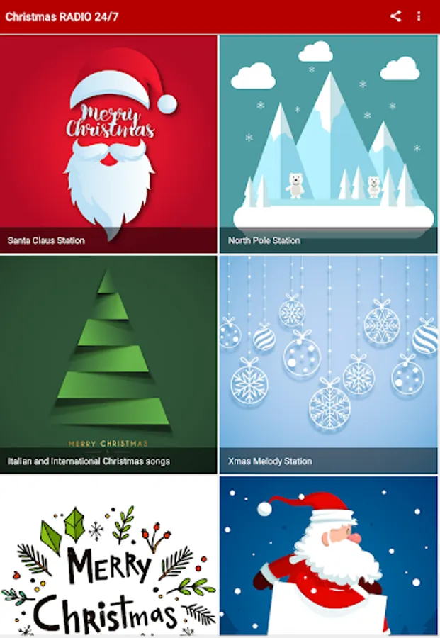 This app features a wide variety of free streaming radio channels. Find your favorites Christmas songs 24/7