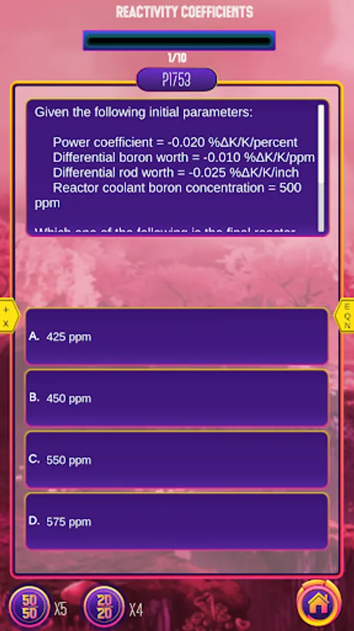 Quiz questions have a built-in scientific calculator and Equations and Conversions sheet, along with tokens you can exchange for explanations or to reduce possible answers from four to two. Tokens and coins are awarded for successful quiz completion, so farm away to stockpile for difficult topics!