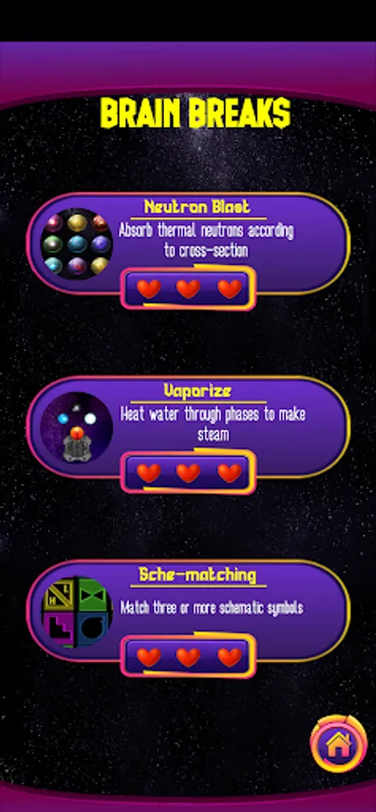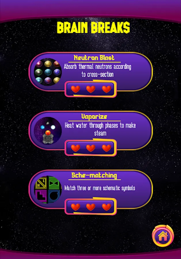 Brain Breaks earned from each world allow you to take a moment to decompress using familiar game concepts up to three times a day.