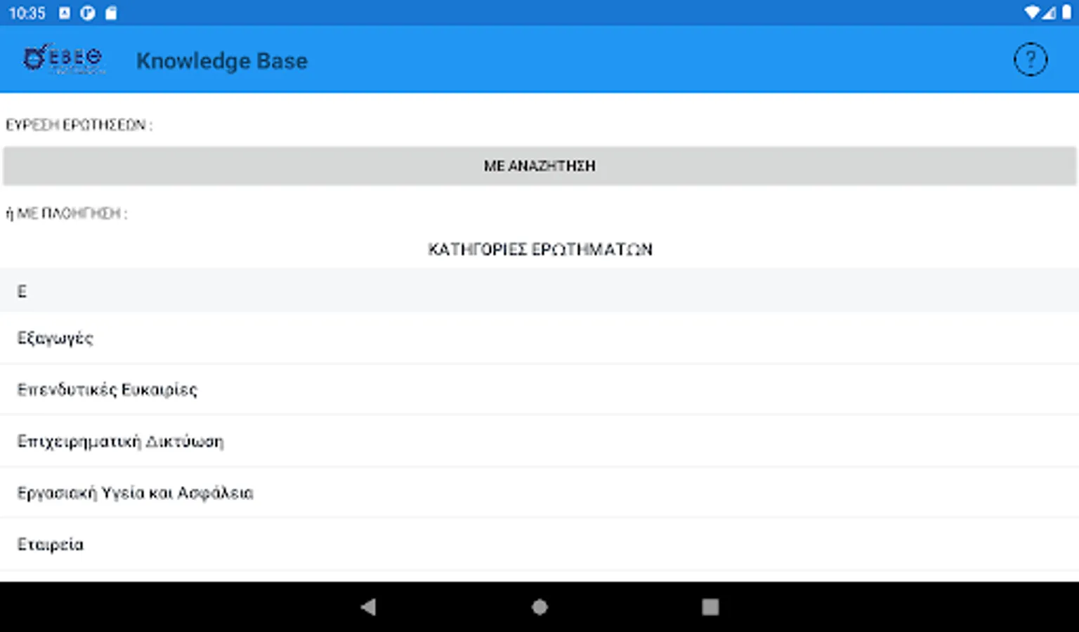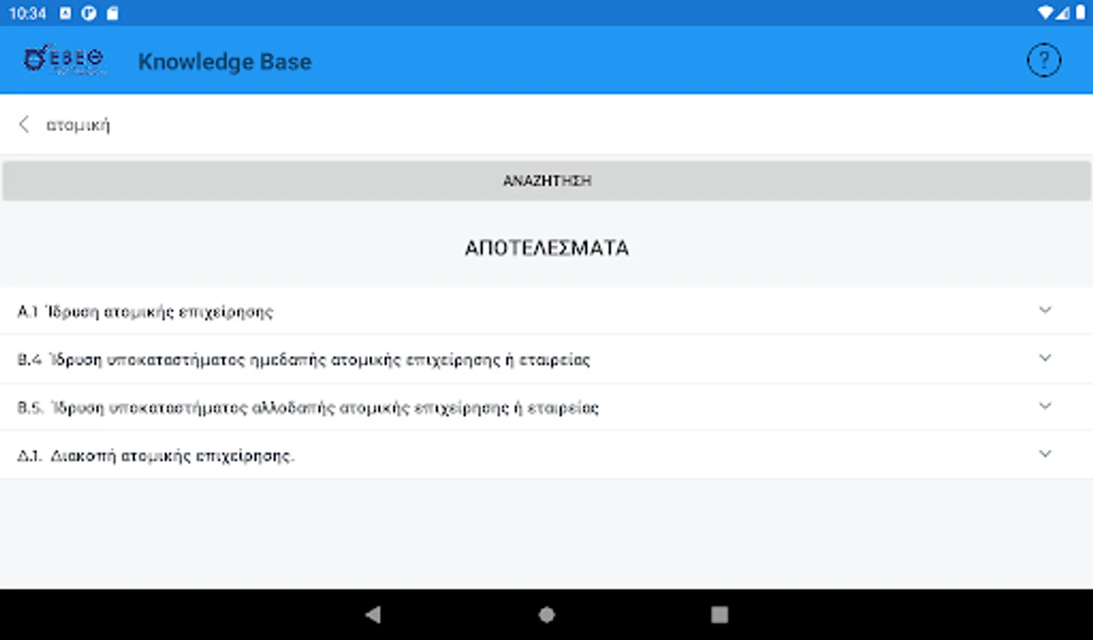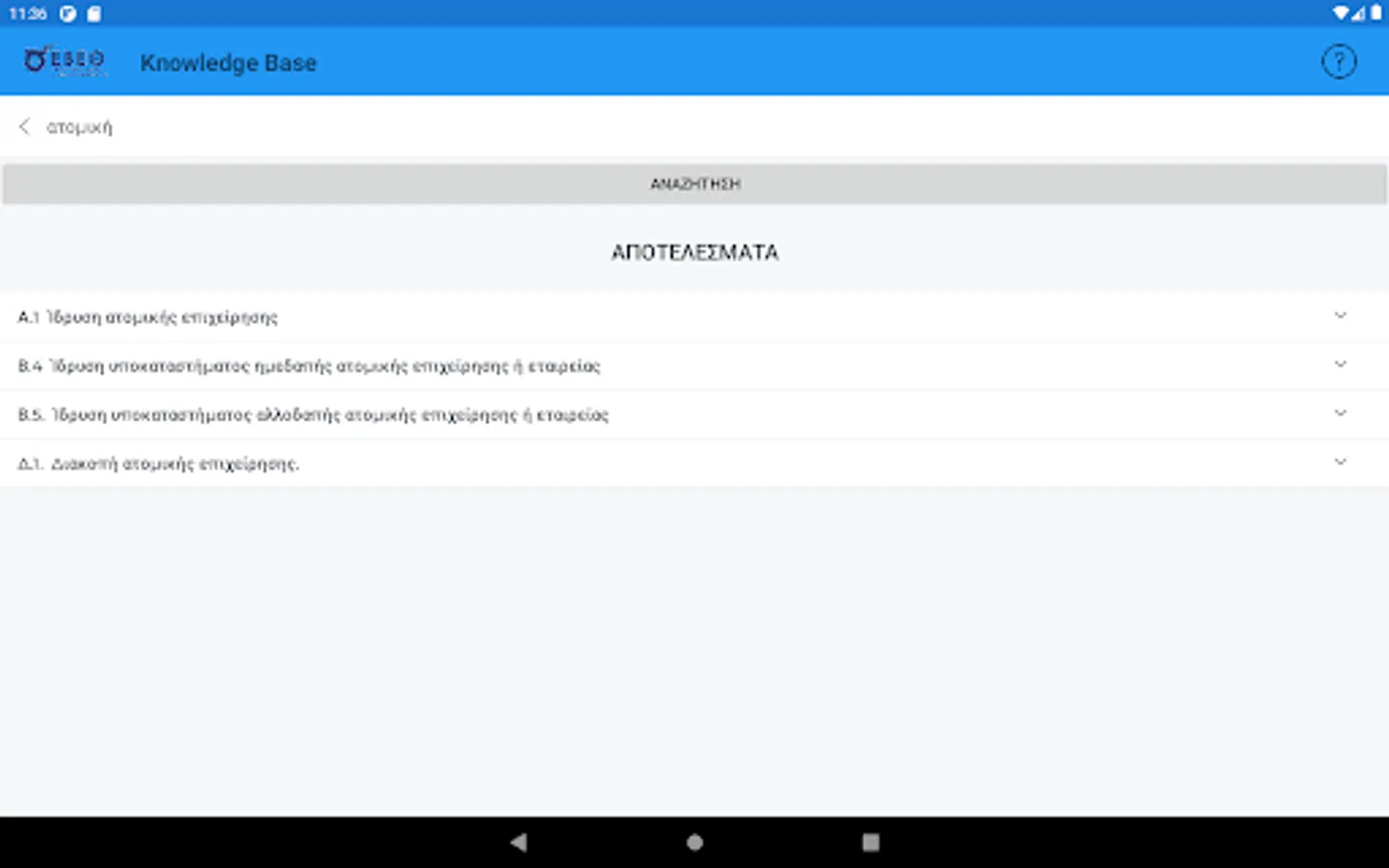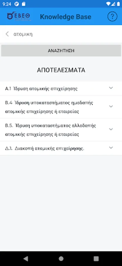 The interested entrepreneur, in the form of questions using keywords, can search and be informed immediately about the various administrative procedures related to the start (eg licensing, etc.), the central public administration, the district, the local authorities, the insurance organizations etc. or the operation of its existing business (eg new activity requiring an operating license, relocation of headquarters to industrial parks, etc.).