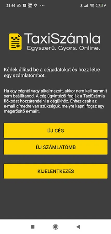 The TaxiInvoice application is only for taxi drivers, with the help of which a VAT invoice can be issued to the passenger with a few clicks at the end of the transport. Invoices issued are automatically reported to the National Tax and Customs Administration in accordance with the law.