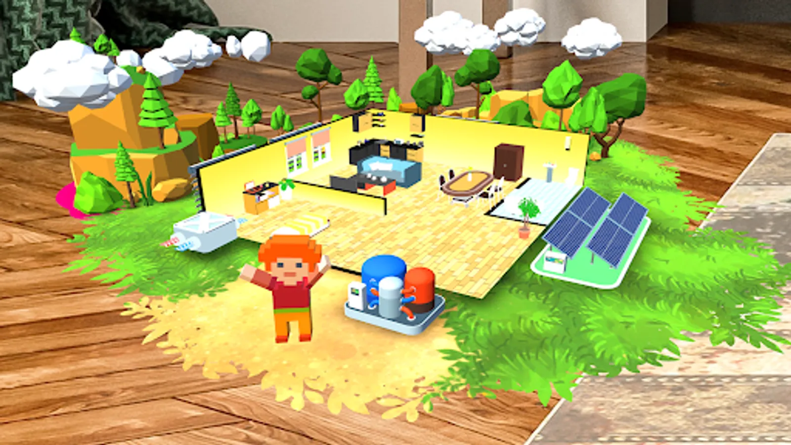 This is an immersive AR (augmented reality) content created for elementary school environmental education.