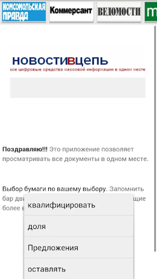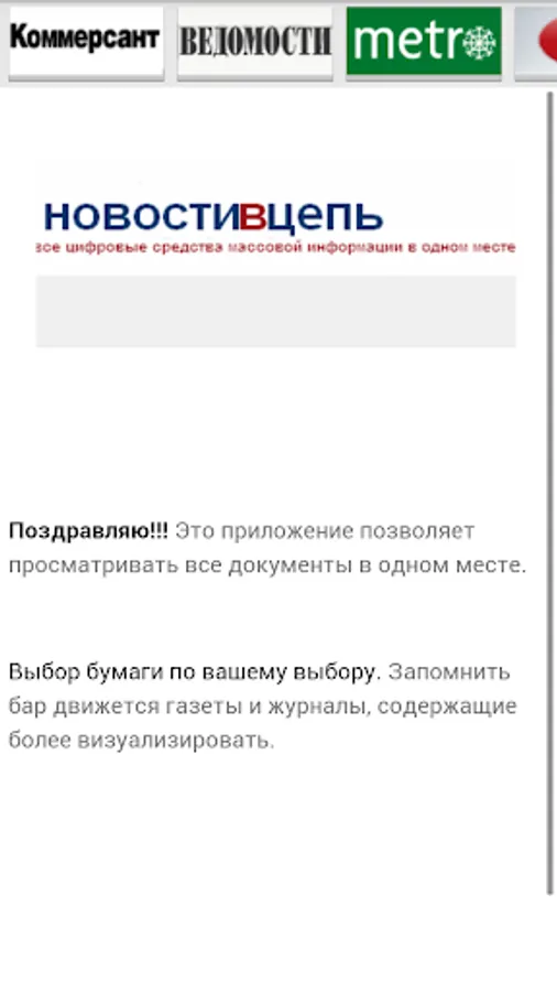 В этом приложении вы можете прочитать обзор и взаимодействовать с российских газет с большим тиражом, чтобы держать вас в курсе событий в стране и