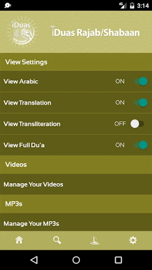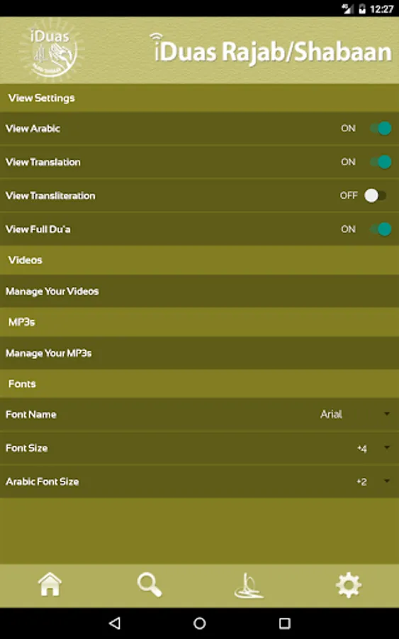 - Can customize the app using the settings (i.e. View Arabic, Transliteration, font size, and more)