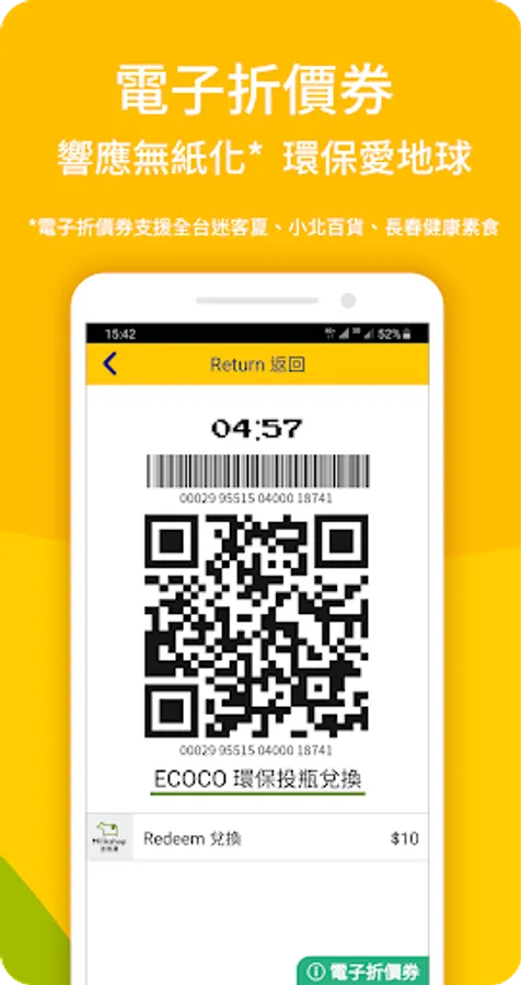 2. Attach the QR Code screen of your mobile app to the ECOCO host scanner, and the standby station will make a “click” and print the coupon.