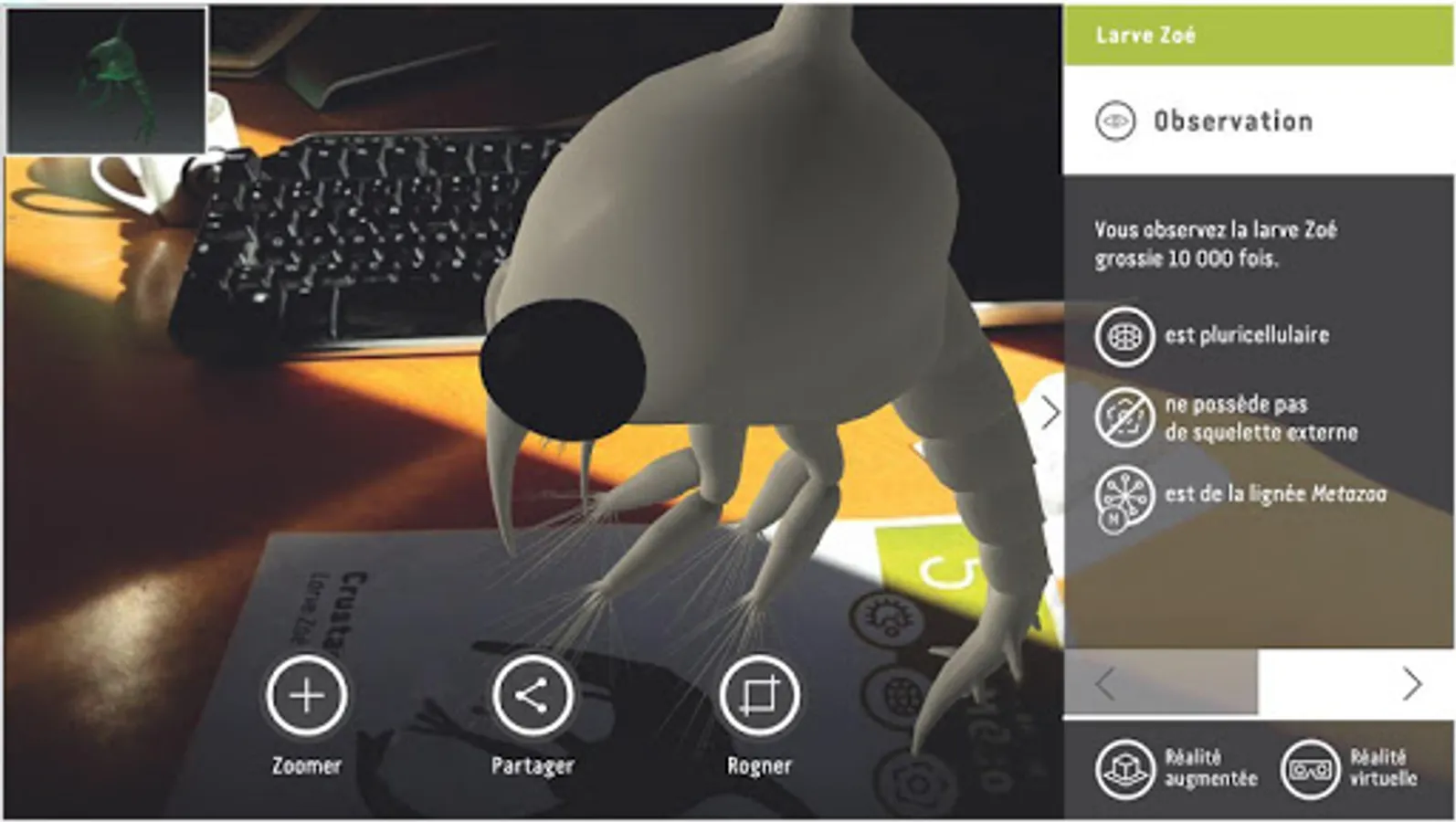 This Application allows you to play with family or friends the game of 7 families in a traditional way but also to enrich your knowledge about plankton thanks to augmented reality. With your smartphone or tablet, you can trigger interactive educational content on each of the maps (quizzes, videos, 3D plankton visualization, etc.). the world of plankton comes to life before your eyes !!