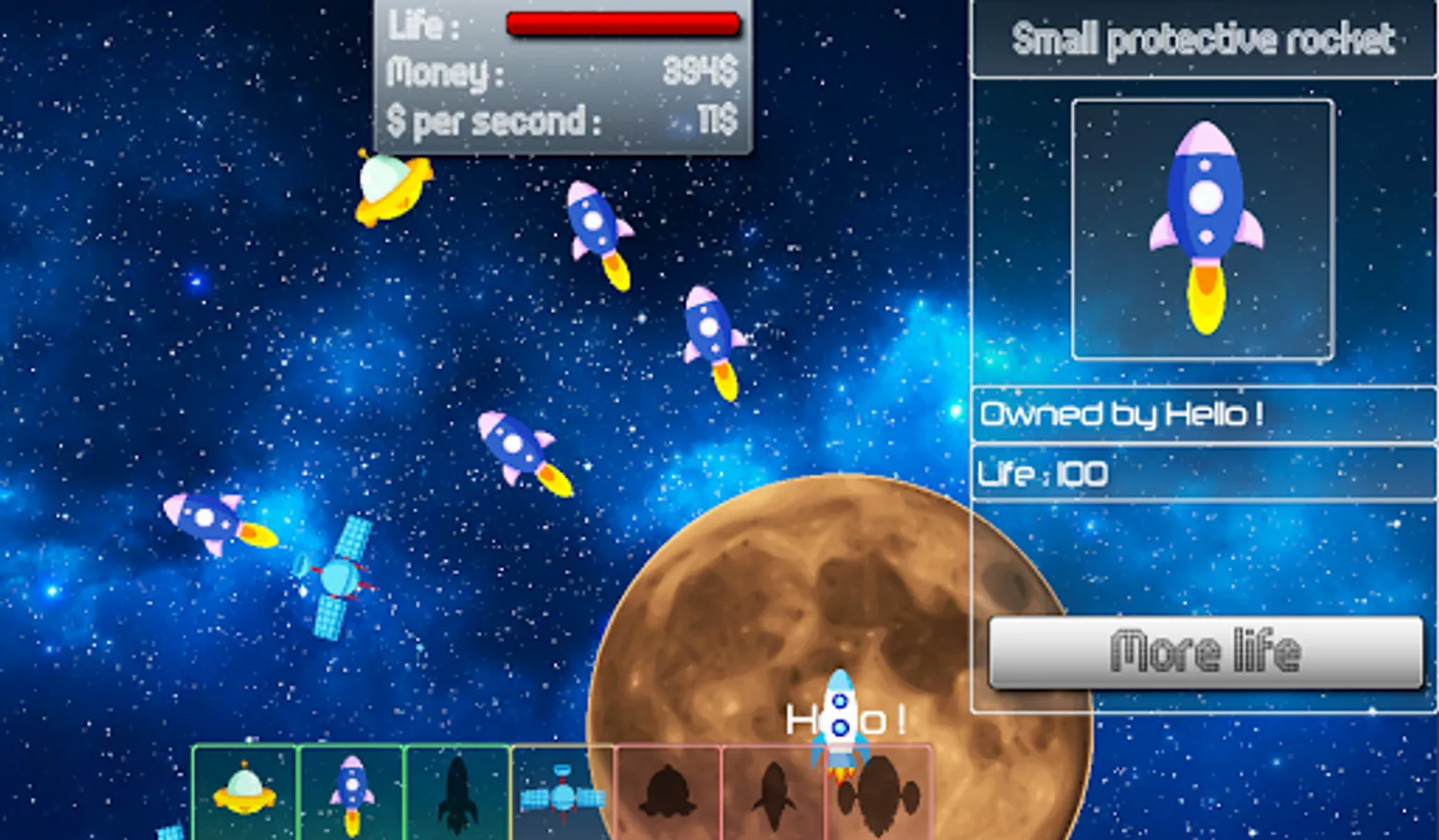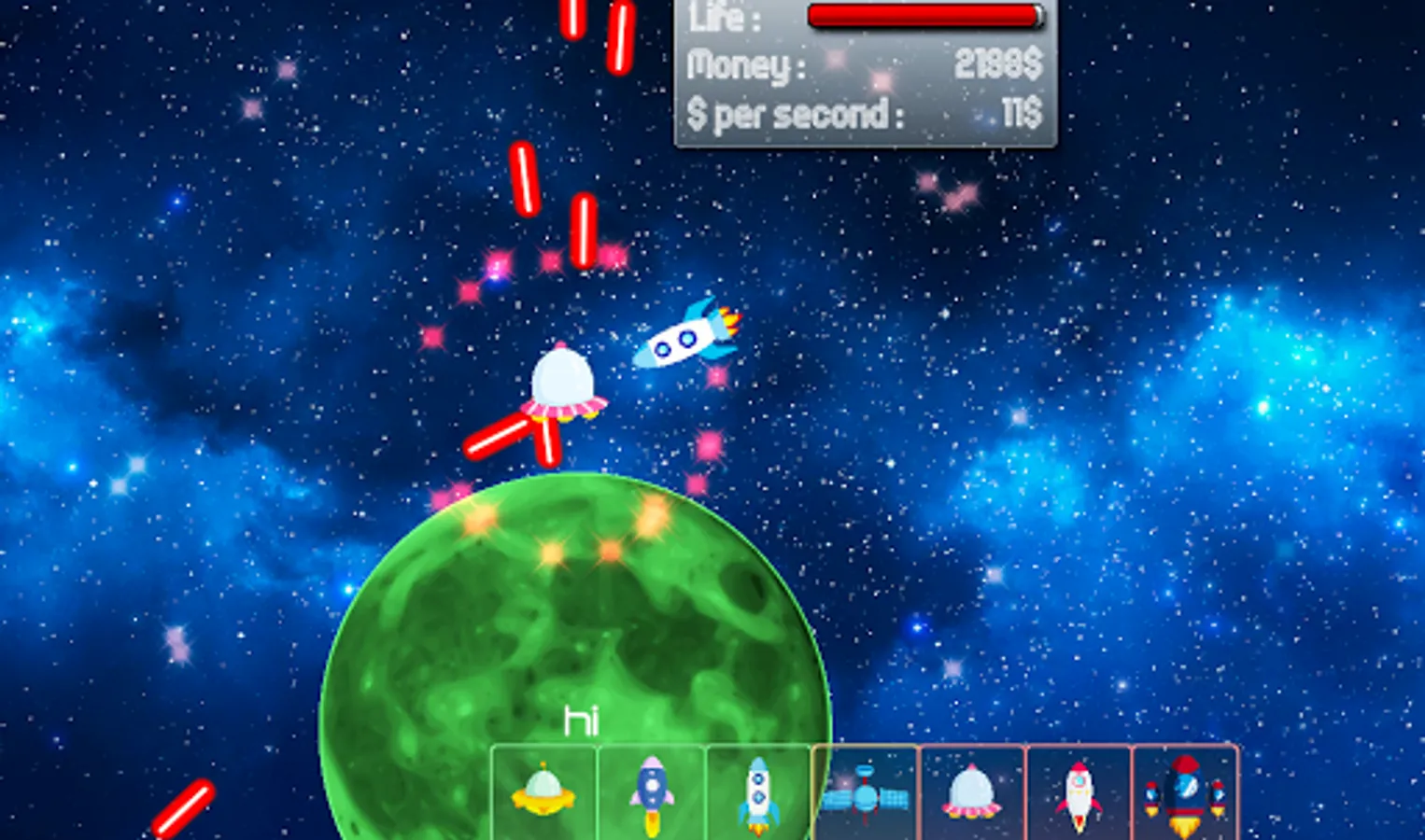 Defend your planet while attacking others' planet with satellites and flying saucers! Improve all your defenses and attacks to be the best!