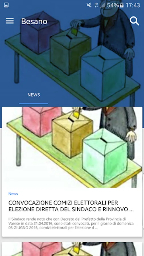 The App acts as a single access point to interact in a simple and simple way with the services of the Municipality of Besano and allows you to reduce management times and facilitate instant communication.