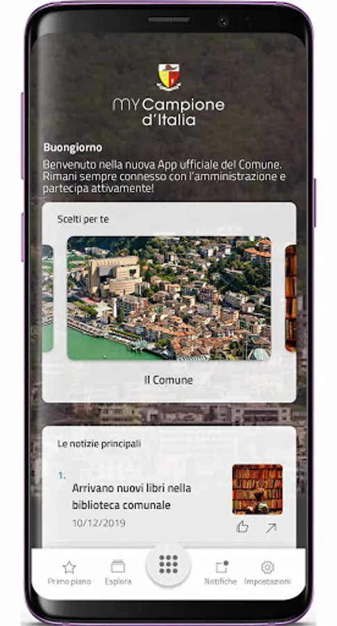 The MyCampioneD'Italia application of the Municipality of Campione d'Italia is the tool, structured for mobile technology, capable of ensuring effective, immediate and constant communication between the Administration and Citizens.