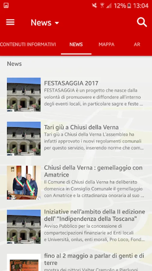 The MyChiusiDellaVerna application of the Municipality of Chiusi della Verna is the tool, structured for mobile technology, capable of ensuring effective, immediate and constant communication between the Administration and Citizens.
