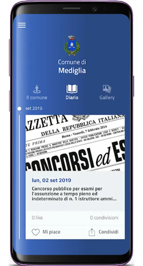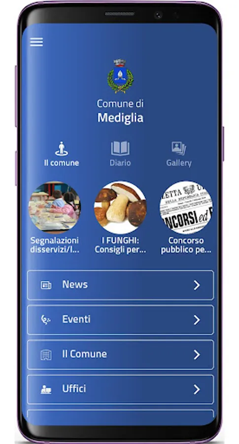 The App acts as a single access point to interact in a simple and simple way with the services of the Municipality of Mediglia and allows you to reduce management times and facilitate instant communication.