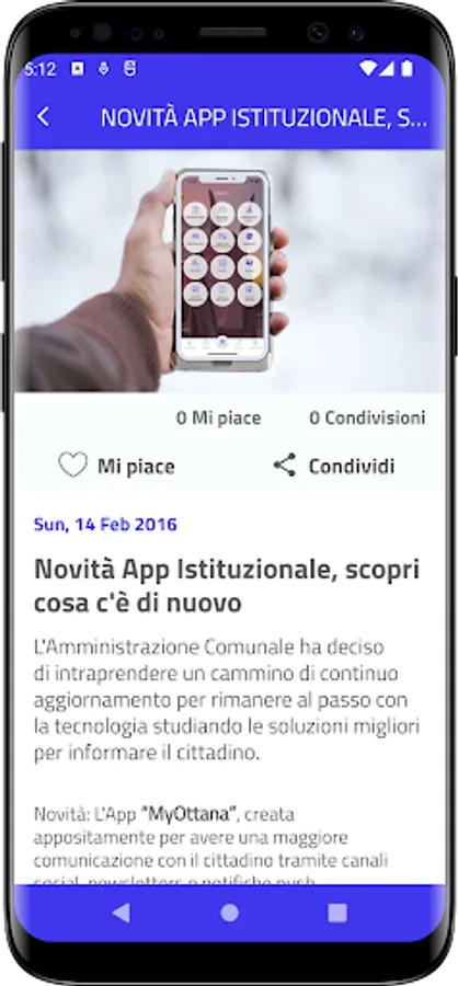 The App acts as a single access point to interact in a simple and simple way with the services of the Municipality of Ottana and allows you to reduce management times and facilitate instant communication.