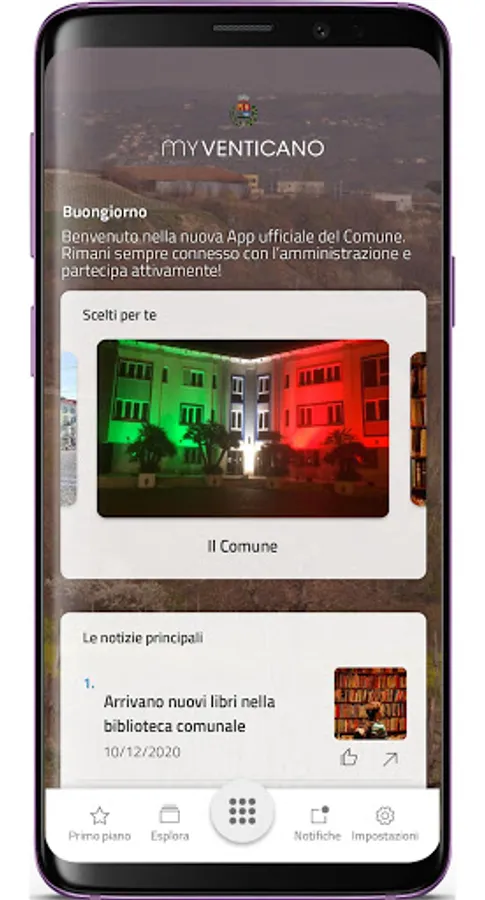 The MyVenticano application of the Municipality of Venticano is the tool, structured for mobile technology, capable of guaranteeing effective, immediate and constant communication between the Administration and Citizens.