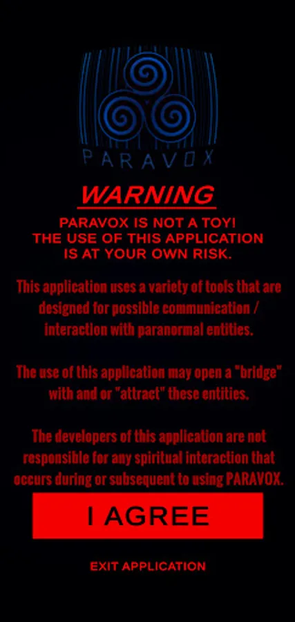 The Developers of this application are not responsible for any spiritual interaction that occurs during or subsequent to using PARAVOX.