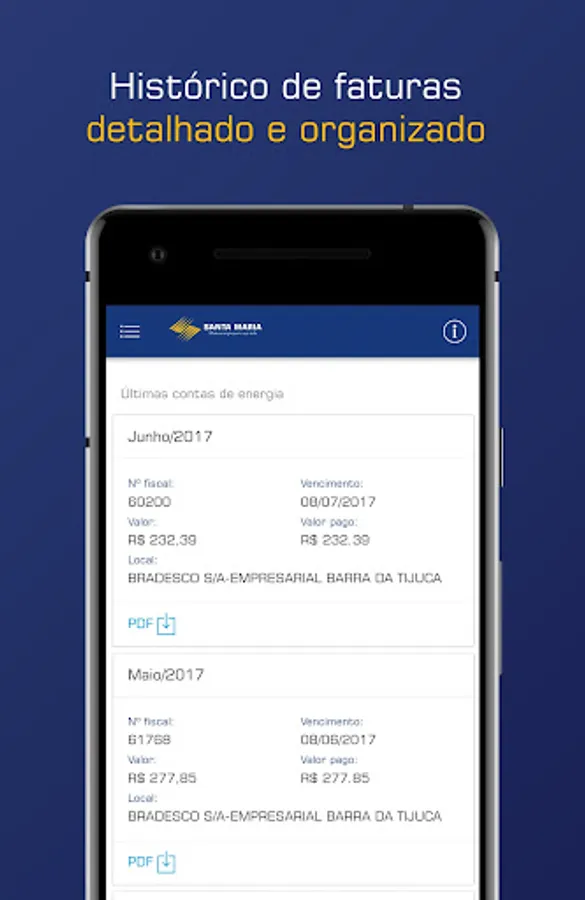 With the Luz & Força Santa Maria S / A application, you have access to all the functions of our portal, in the palm of your hand, where we can highlight: