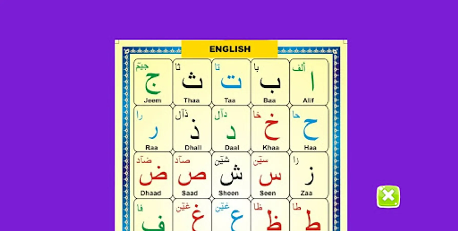 * You can listen to the Arabic Quran letters aloud and learn with the game.
