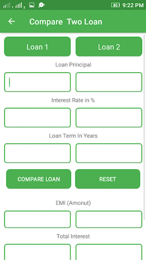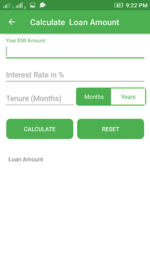 Calculate In Your Interest & Loan Amount to Find the EMI Amount in monthly payable amount.