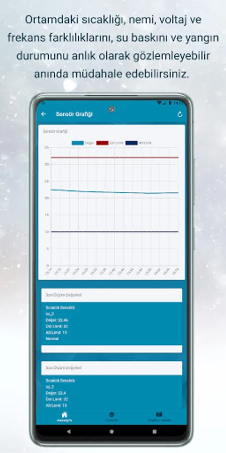 iSense measures the temperature, humidity, voltage and frequency changes, water-leakages and smoke in the environment. It consists of sensors and monitoring panel. User sets upper and lower limits to receive alarm with push notification, email and SMS.