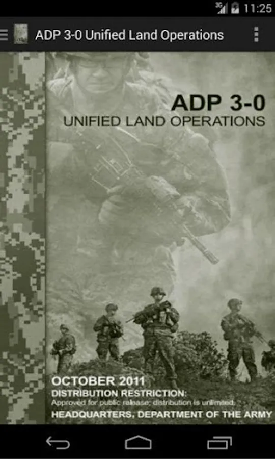 Army Doctrine Publication (ADP) 3-0 Unified Land Operations, is unclassified approved for public release and distribution unlimited document which provides a common operational concept for a future in which Army forces must be prepared to operate across the range of military operations, integrating their actions with joint, interagency, and multinational partners as part of a larger effort.