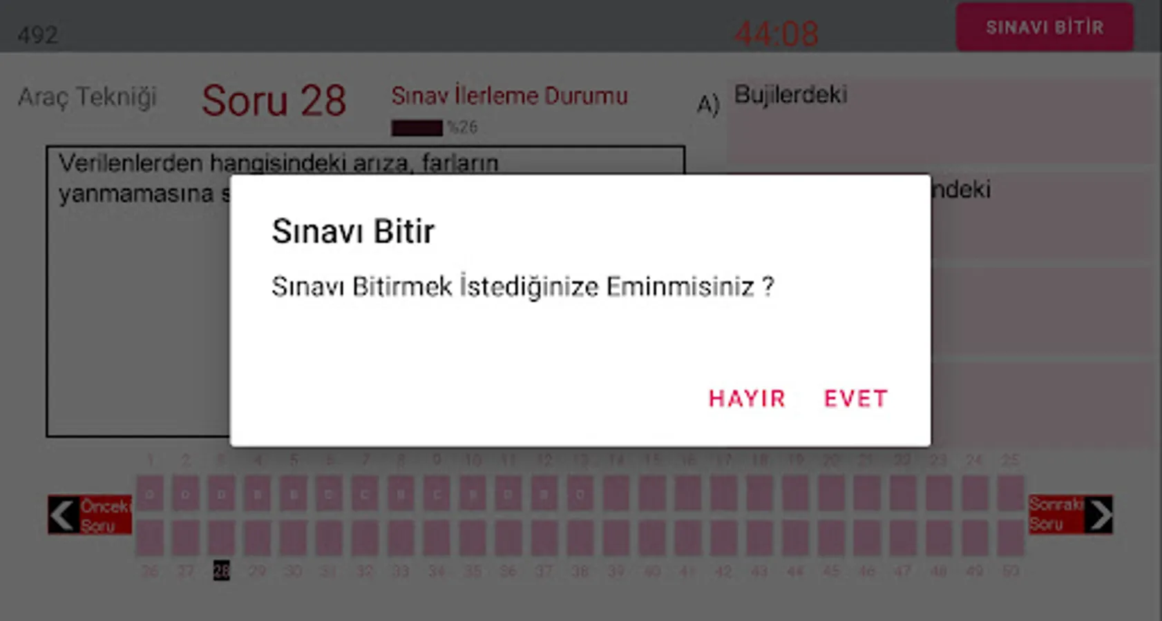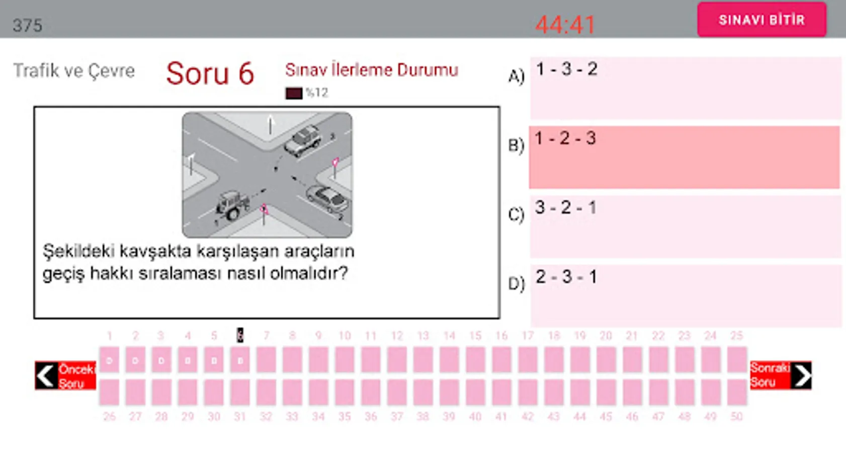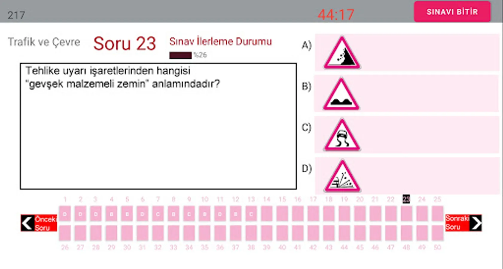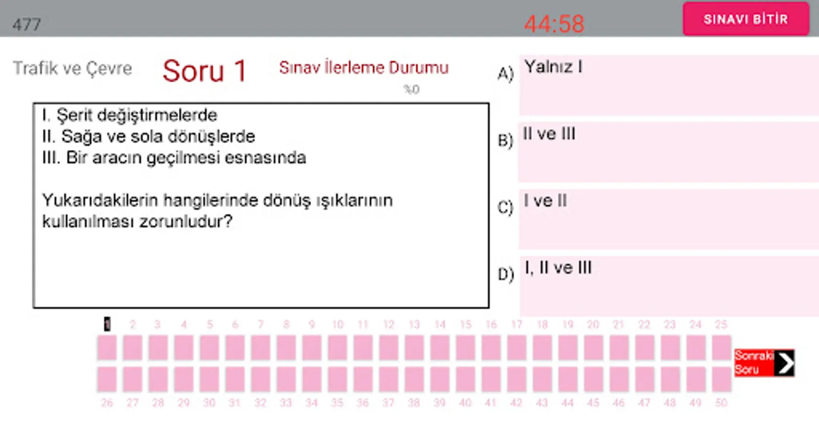 The Motor Vehicle Driver Trainee Exam has been held electronically since June 2011. A pleasant and simple application has been prepared that you can use to manage the exam program that you come across when you take the exam more easily and to prepare for the exam with the questions asked in the past years. With the application, you can try yourself with a program similar to the real exam and instantly evaluate the results you get.