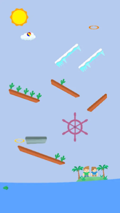 Bounce Sky Ball to Island jumping platforms, red umbrellas, bubbles, portal & rudders and bring sky ball and kids together to cheer kids up!