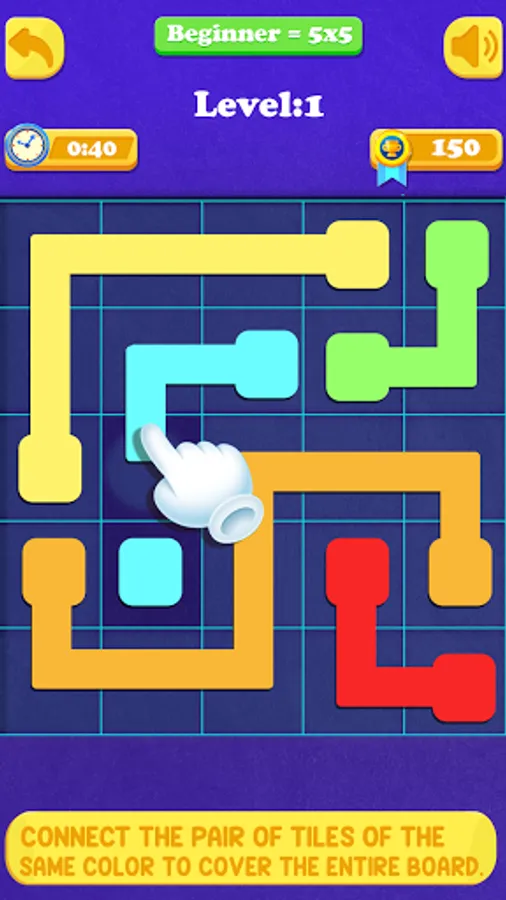 Each puzzle has a grid of squares with coloured dots occupying some of the squares. The Player need to connect dots of the same colour by drawing 'Lines' between them such that the entire grid is occupied by Lines. However, Line may not intersect. Difficulty is determined by the size of the grid, ranging from 5x5 to 10x10 squares.
