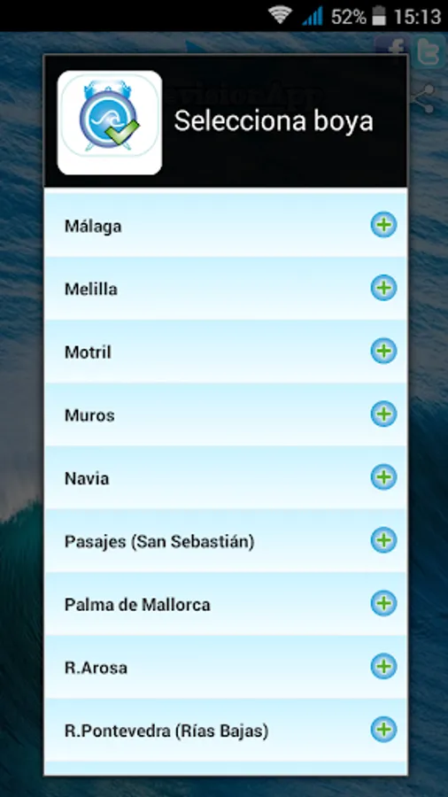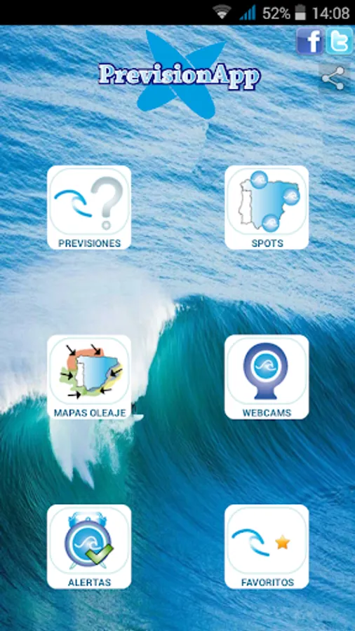 Download PrevisionApp and enjoy the visualization of original forecast tables of State Ports (Spain, Portugal and south-west of France), wave and wind maps (FNMOC and AEMET), webcams, and information on all the spots in Spain, Portugal and south-west France.