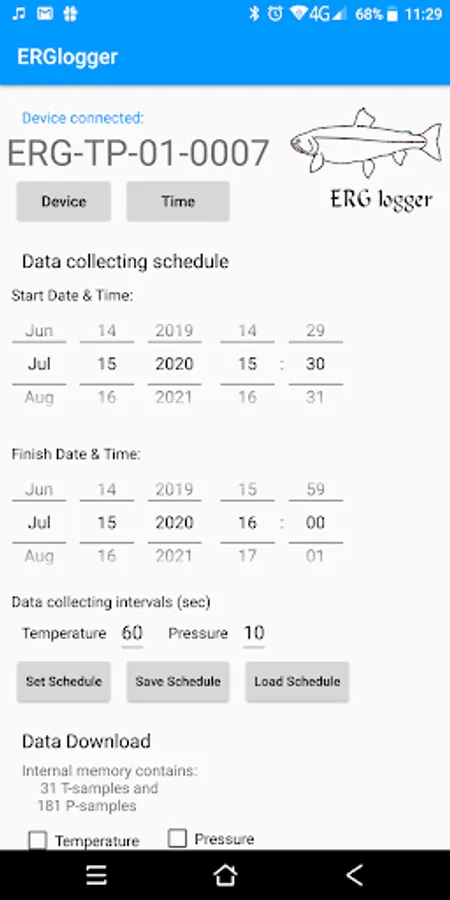 ERGlogger was designed to operate temperature and pressure autonomous loggers designed and manufactured by ERG Research Group for Lomonosov Moscow State University.