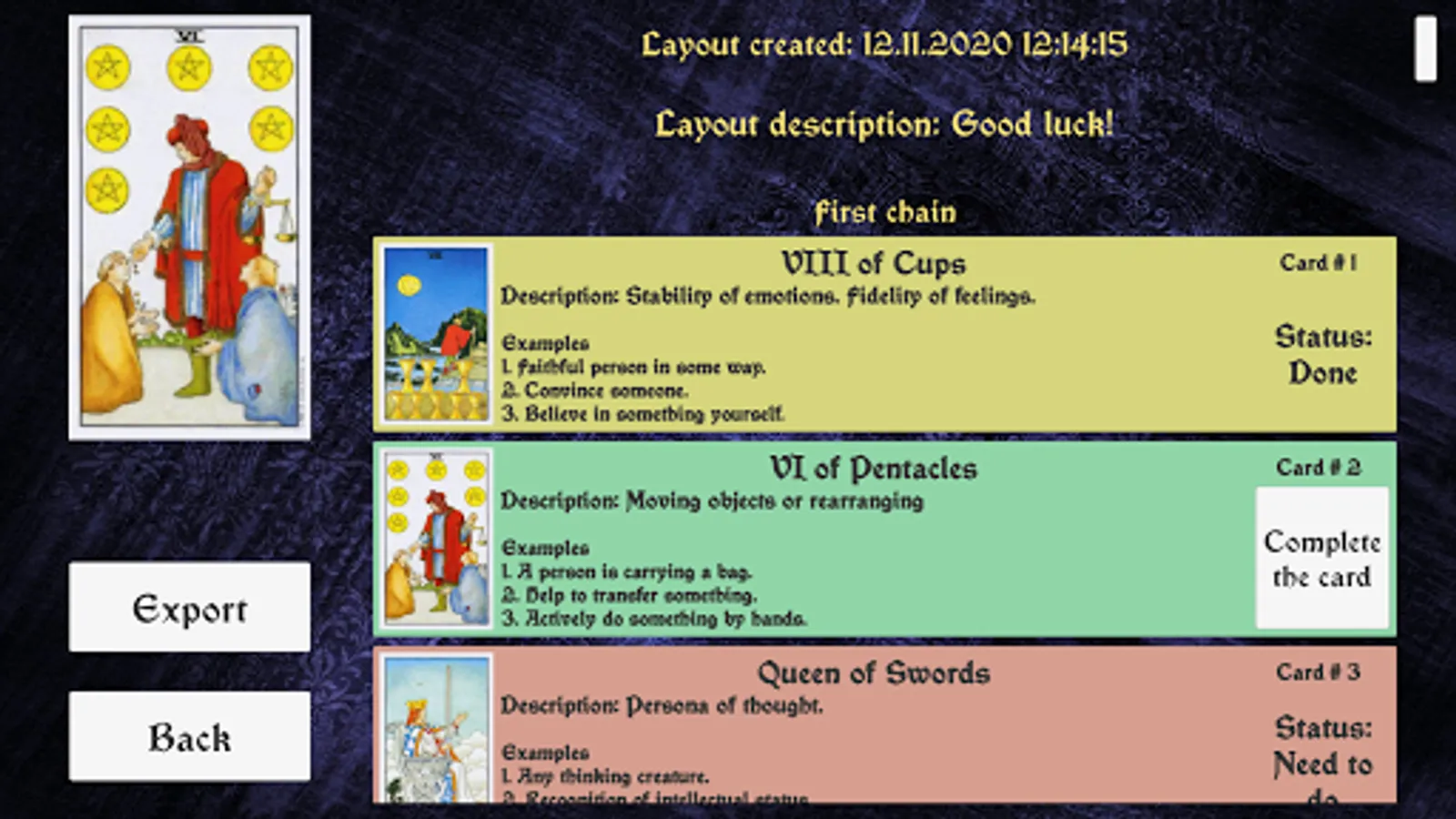 The program was created according to the description from the book "Tarot Magic: Event Programming (English Edition)" by Petr Krylov. What for? - Because I can :)