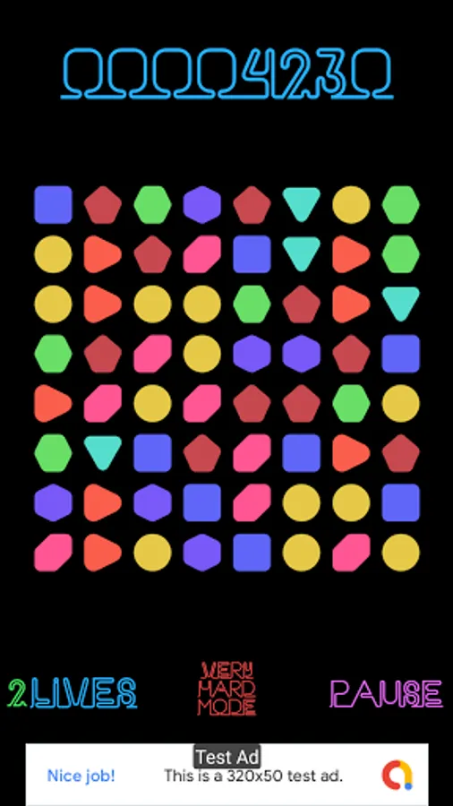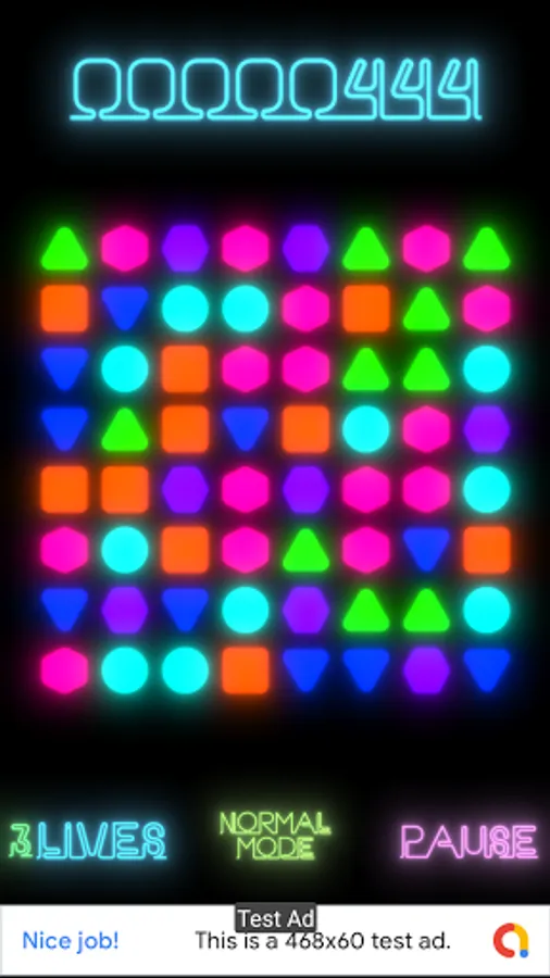 Very beautiful specific graphics in neon style and pleasant music will allow you to plunge into the game for many hours. No time limits. Only the number of lives that disappear if the moves are over is limited.