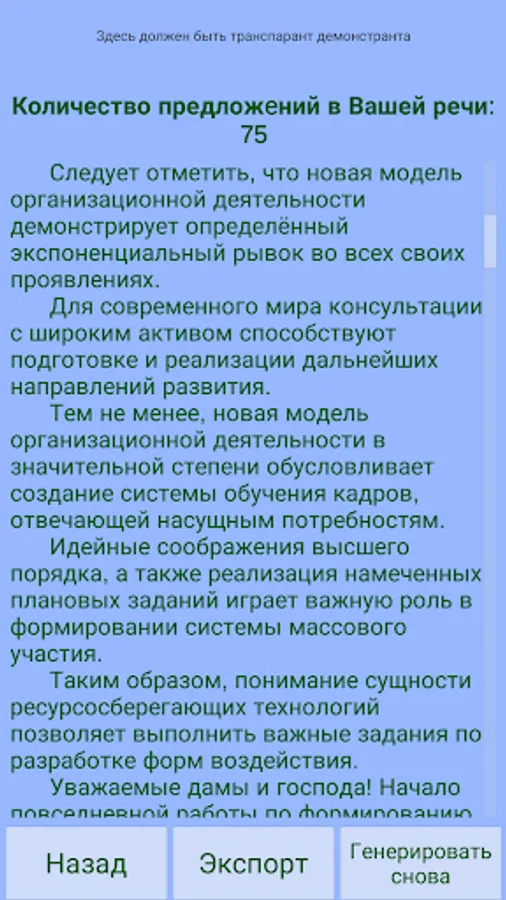 The generator program will help you prepare for your public speaking. It will create for you with the help of universal phrases a lot of "vodi" in your speech. This is serious ...