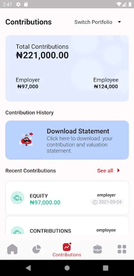 Contributions: This allows members to view employee and employer contributions in both Value and Units. In addition, members can make a request for a portfolio switch.