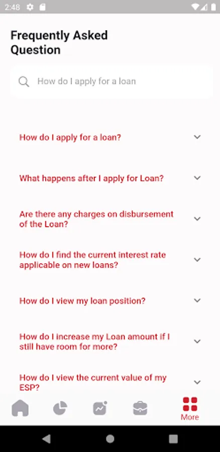 Loans: This allows members to apply for loans, view loan status, running loans, monthly repayment amount and loan history.