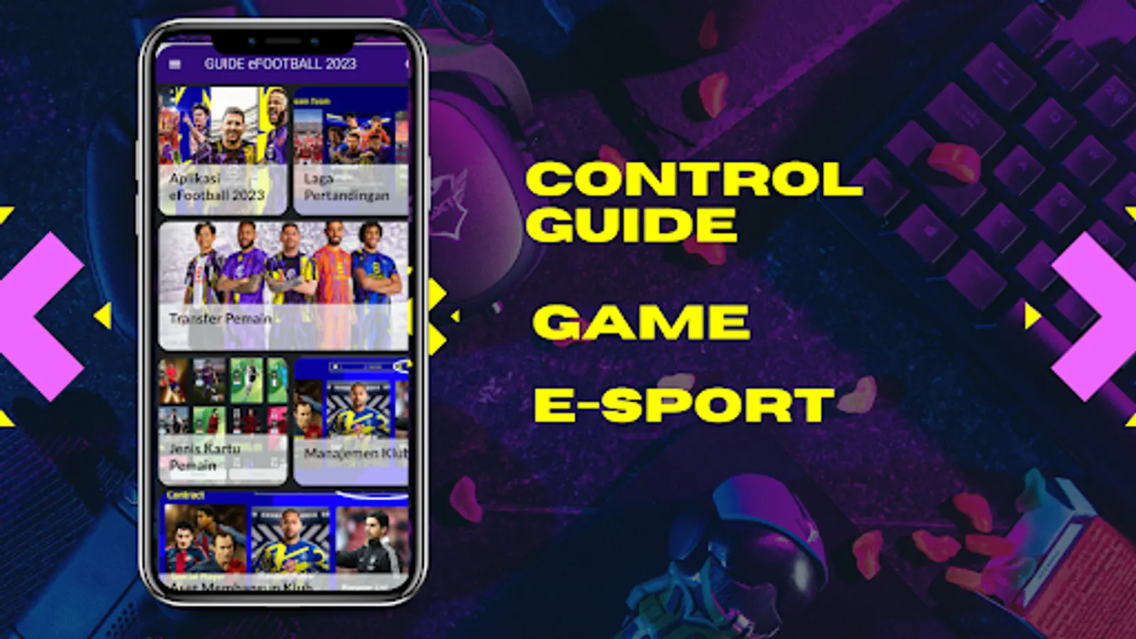 Aplikasi E-Sport Football 2023 Guide merupakan aplikasi yang disediakan secara gratis. Aplikasi ini berisi tentang panduan permainan simulasi sepak bola yang sedang diminati banyak orang. Aplikasi ini menawarkan peluang cara bermain game sepak bola untuk menikmati dengan cara yang baru, dengan realisme yang bagus. Dalam Panduan ini, memuat apa saja yang baru dari semua tambahan baru dalam game dan berbagi beberapa kiat berharga bagi pengguna untuk mendapatkan hasil maksimal saat bermain.