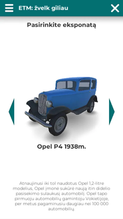 Energetikos ir technikos muziejaus virtualus turas. Programėlėje pateikiama informacija apie muziejų bei jame esančius eksponatus